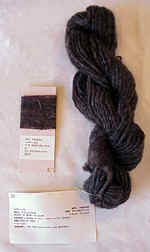 Preparation for Spinning: Washed in very hot water with ivory liquid, dried on a towel out of the sun.. Drumcarded and pulled into roving. Reason for Choice of this Sample: This clean, strong, soft fleece draws easily and smoothly. Spun softly on the Navajo spindle it is ideal for many uses. |