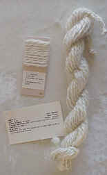 | This fiber and sample 5 fiber are from the same fleece. This sample was prepared first with wool combs. The loose, short fiber caught in the wool combs was then carded into rolags for sample 5. | |||